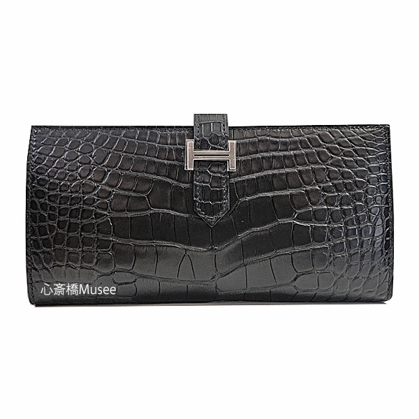 ≪ 新品 ≫ HERMES エルメス ベアン スフレ アリゲーターマット 黒 シルバー金具 Z刻印 箱 リボン ラッピング HERMES Bearn Souffle Alligator Mat Black Silver Backle