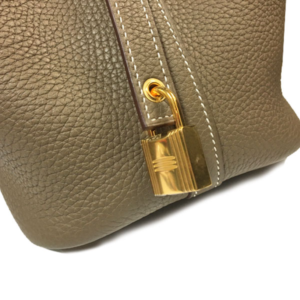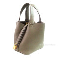 ≪ 新品 ≫ エルメス ピコタン ロック 18 PM エトープ ゴールド金具 トリヨンクレマンス エトゥープ K刻印 ≪Brand new≫ Hermes Picotin Lock 18 PM Bag Etoupe Gold Hardware Taurillon Clemence K engraved Box Ribbon Wrapping