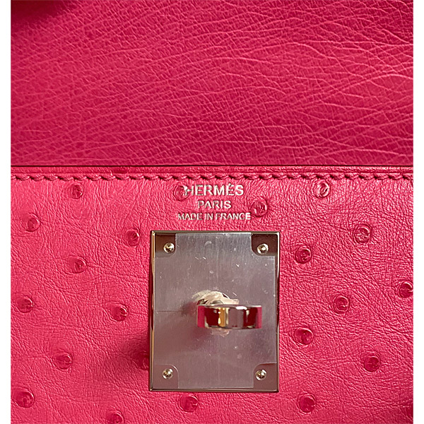 エルメスでも希少なオーストリッチのケリー28。 28センチは使いやすい大きさで、おすすめです。カラーも人気のローズティリアン×シルバー金具。上品でどのようなシーンでもさし色でマッチする存在感のあるケリーです。ショルダーをつければマニッシュに。さらに使いやすくなります。