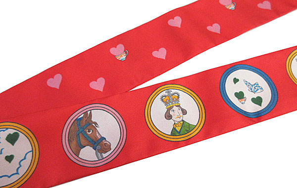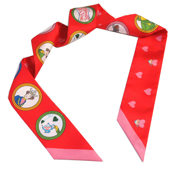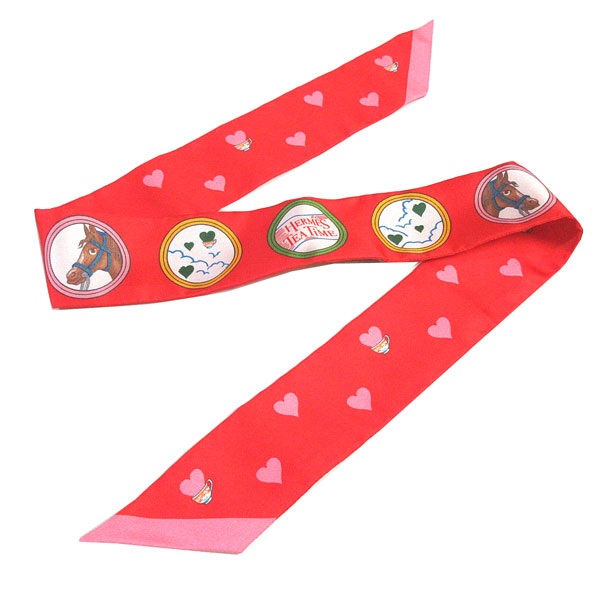 • ≪新品≫ エルメス ツイリー Tea Time / ティータイム ルージュヴィフ/ヴェール/マルチカラー rouge vif/vert/multicolor 赤 ピンク ミニ スカーフ ミニ スカーフ 箱 リボン ラッピング ハート Hermes Twilly