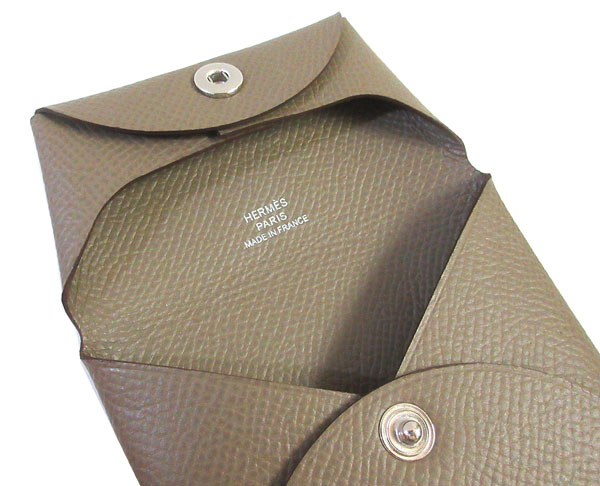 • ≪新品≫エルメス バスティア エトゥープ シルバー金具 エプソン コインケース 財布 U刻印 HERMES BASTIA ETOUPE 箱 リボン ラッピング エトープ