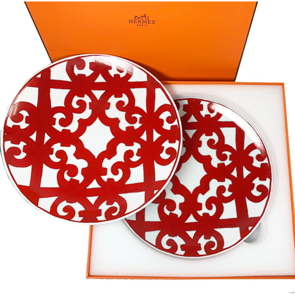 • ≪ 新品 ≫ HERMES エルメス ガダルキヴィール シリーズ デザートプレート 21cm 2枚セット 皿 デッシュ プレート GUADALQUIVIR White / Red プレゼント 箱 レア! ホワイト/レッド 赤 白