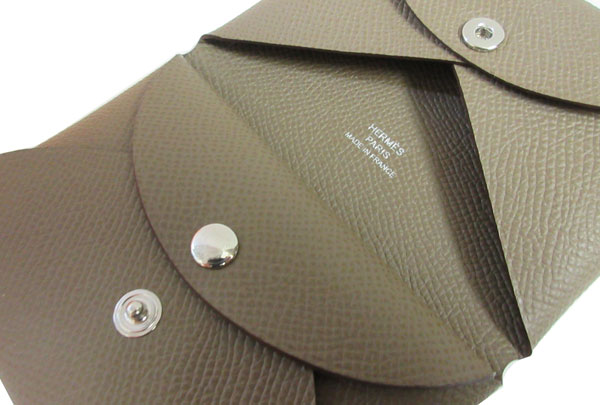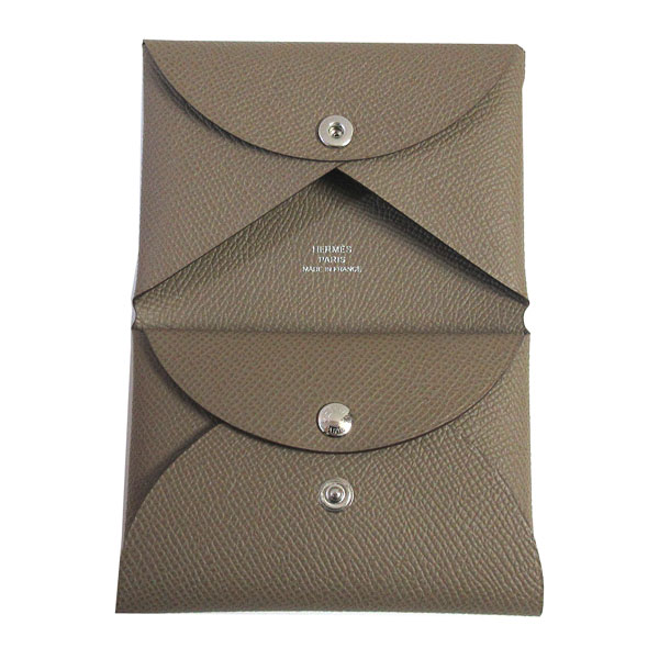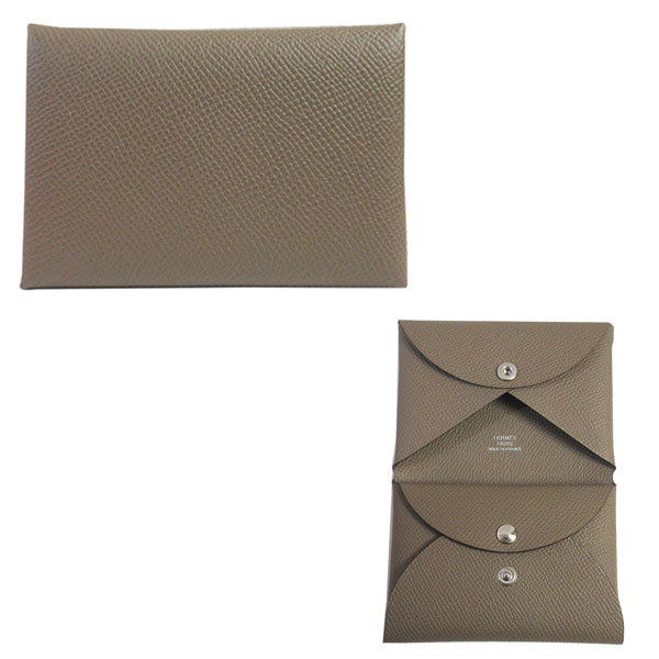• ≪新品≫エルメス カードケース カルヴィ デュオ エトゥープ エプソン W刻印 コインケース 名刺入れ 財布 HERMES Calvi duo Etoupe Epson 箱 リボン ラッピング