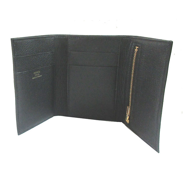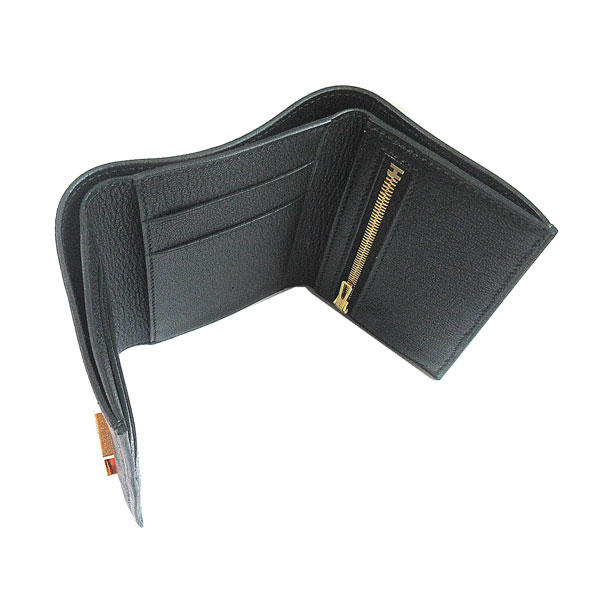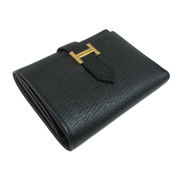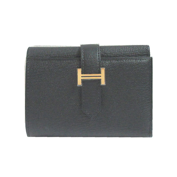 • ≪新品≫ HERMES エルメス ベアン コンビネ 三つ折り ミニ財布 シェーブル 黒 ブラック ピンク ローズゴールド 金具 箱 リボン ラッピング≪Brand new≫ Hermes Bearn Mini Noir Black Rose Gold Hardware Chevre Wrapping Mini Wallet