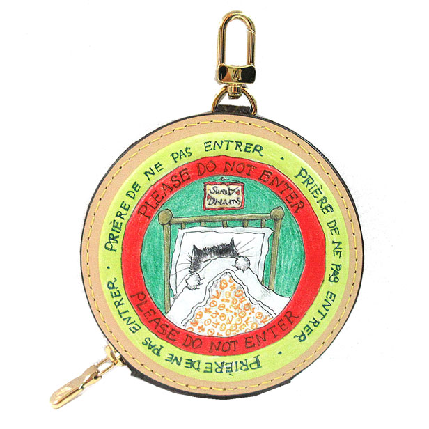 The "Slippy Coin Purse" features a cute cat illustration on Monogram canvas. This is a collaboration with popular artist Grace Coddington. Her charming hand-drawn cat motif is playful and captivating. The rounded design and gold-colored hook make it the perfect bag charm.