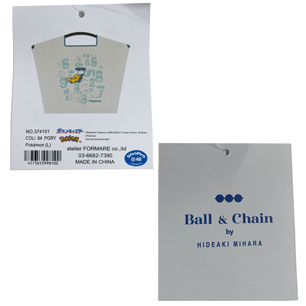 ボールアンドチェーンイエローレーベル店やポップアップなど限定店舗でのお取り扱いのピカチュウナンバーコレクションです。淡いグレーに黄色のピカチュウがポイントになり可愛い!!大容量のLサイズです。内側には小物を収納できるポケット付きです。使わないときはコンパクトに畳んでゴムバンドで留めれます。ギフトにも最適です♪This is a Pikachu number collection available at limited stores such as Ball & Chain Yellow Label stores and pop-ups. Light gray and yellow Pikachu is the highlight and cute! ! Large capacity L size. There is a pocket inside that can store small items. When not in use, it can be folded compactly and secured with an elastic band. Perfect as a gift♪..