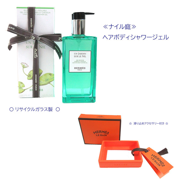 ≪ 新品 ≫エルメス ヘア & ボディ シャワージェル 《 ナイルの庭 》ガラス製 ラッピング リボン ショッパー ≪ Brand new ≫ Hermes Hair & Body Shower Gel "Gardens on the Nilee" Glass Wrapping Ribbon Shopper
