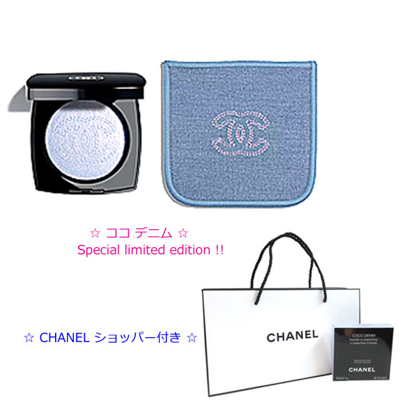 多彩なきらめきを放つ肌に仕上げる特別限定品、ココ デニム。ブルーとピンクのパールがきらめくパウダー ハイライターです。表面には、クチュールを思わせるトップステッチ ディテールのダブルCがかたどられています♪/An Exclusive Creation illuminating powder that enhances the complexion with an iridescent glow. The pearlescent shade with blue and pink shimmer is embossed with the iconic double C monogram, featuring a topstitching design that adds a distinct touch of couture. The compact comes enveloped in a jean-material pouch to fit the occasion, for an all-denim effect. Limited edition.With the Denim Makeup Collection, the CHANEL Makeup Creation Studio and COMETES COLLECTIVE member Valentina Li present a new way to wear the fabric―as makeup. They drew from its universal aesthetic to create a timeless look... |